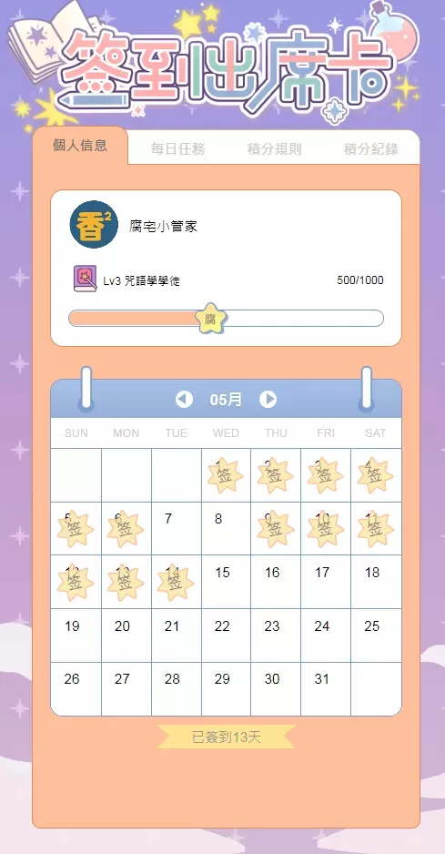 目前APP的用户也有签到出席卡!!